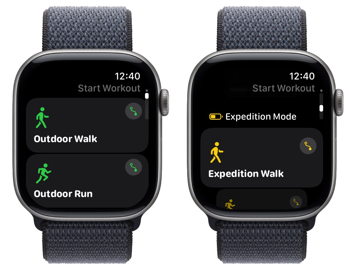 Premium members can start workouts in Expedition Mode. This new mode saves battery life on extended hikes, walks, and runs by disabling constant heart rate tracking and instead relying only on the basic heart rate tracking the Apple Watch provides.